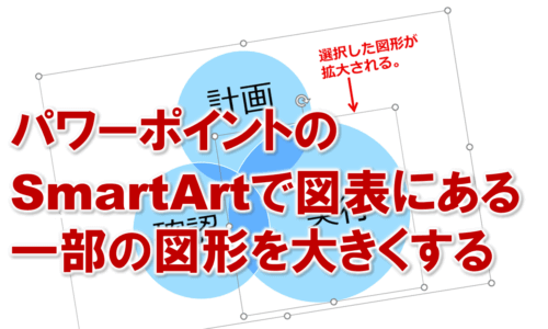 パワーポイントのSmartArtで図表にある一部の図形を大きくするには?