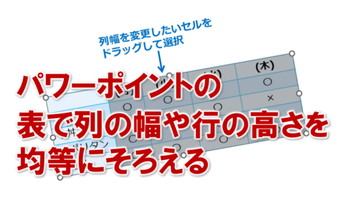 パワーポイントの表で列の幅や行の高さを均等にそろえるには?