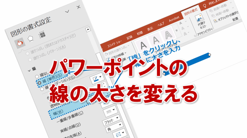 パワーポイントでは、基本の「図形の枠線」メニューからは6ptまでしか太さを選べませんが、「図形の書式設定」ウィンドウを使えば、もっと自由に太さを指定できます。