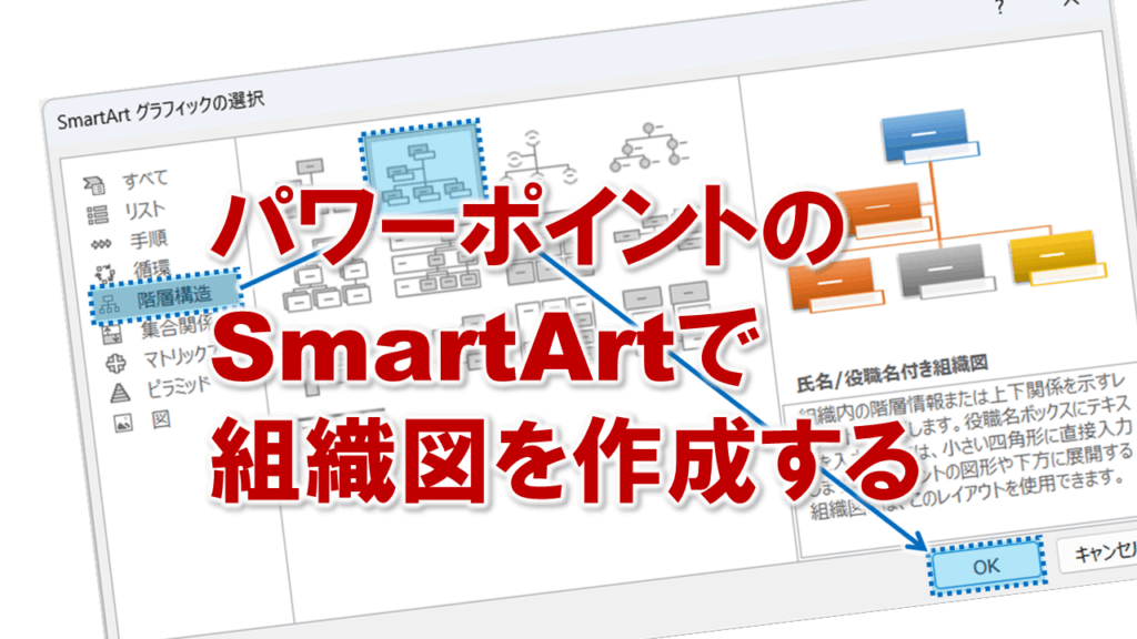 ②「SmartArt グラフィックの選択」ダイアログボックスが表示されるので、