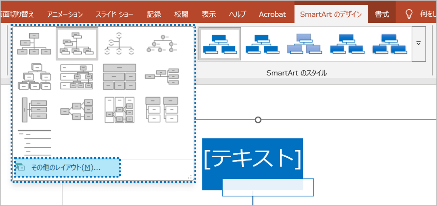 表示されたもの以外の図表に変更したい場合は、「その他のレイアウト」をクリックします。