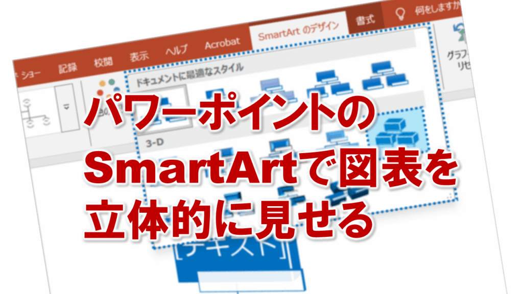 パワーポイントのSmartArtには、クリックひとつで図表を立体的に見せられる便利な機能が用意されています。