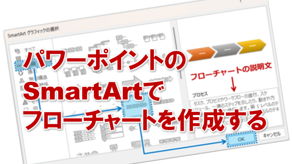 パワーポイントでプレゼン資料や企画書を作るとき、「作業の流れ」や「手順の順序」を視覚的に伝えるために、フローチャートを使うことがありますよね。
