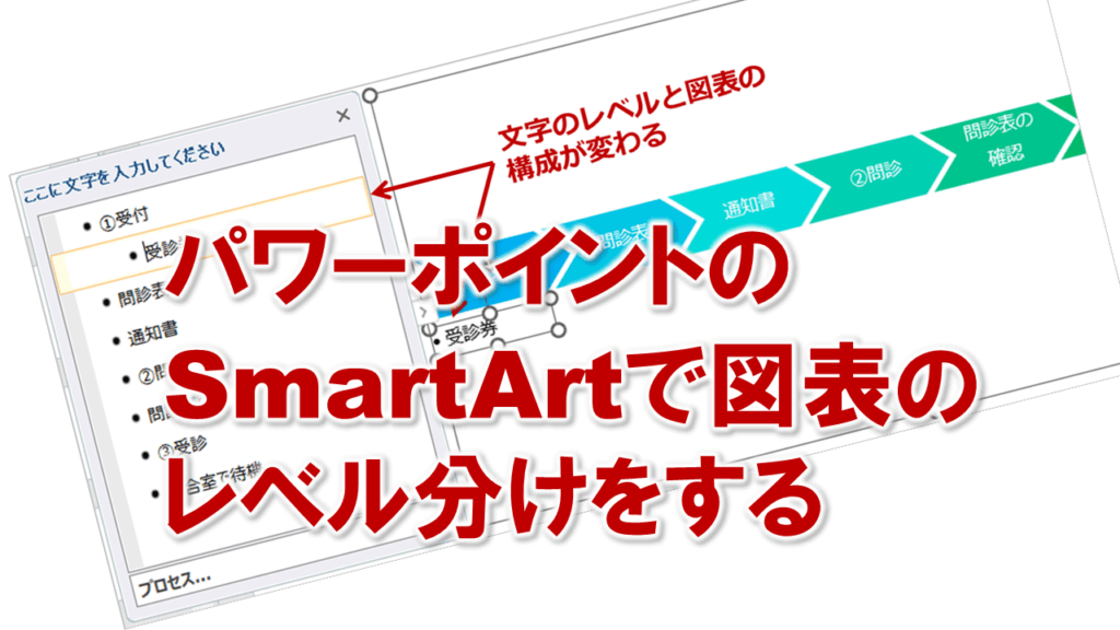 パワーポイントのSmartArtで図表の中でレベル分けをするに関する説明は以上です。